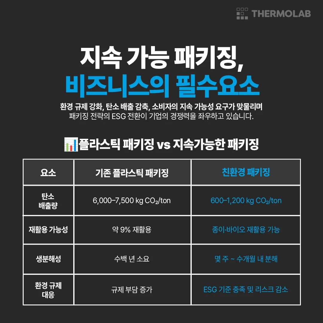 환경 규제 강화, 탄소 배출 감축 압력, 그리고 소비자들의 지속가능성에 대한 요구가 맞물리며 패키징 전략은 기업의 ESG 대응과 장기적 경쟁력을 좌우하는 핵심 요소로 부상했습니다. 이제 친환경 패키징은 선택이 아닌 필수가 되었으며, 이에 대한 선제적 대응은 기업의 미래 경쟁력을 결정짓는 중요한 요소가 될 것입니다.